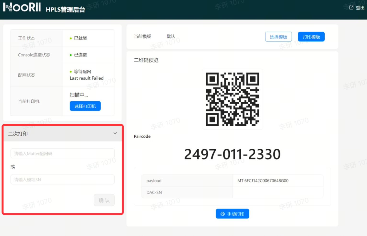 HPLS 服务支持二维码丢失或损坏的场景,可以再次对配网二维码打印