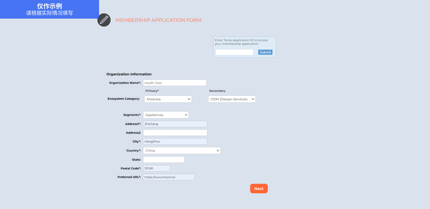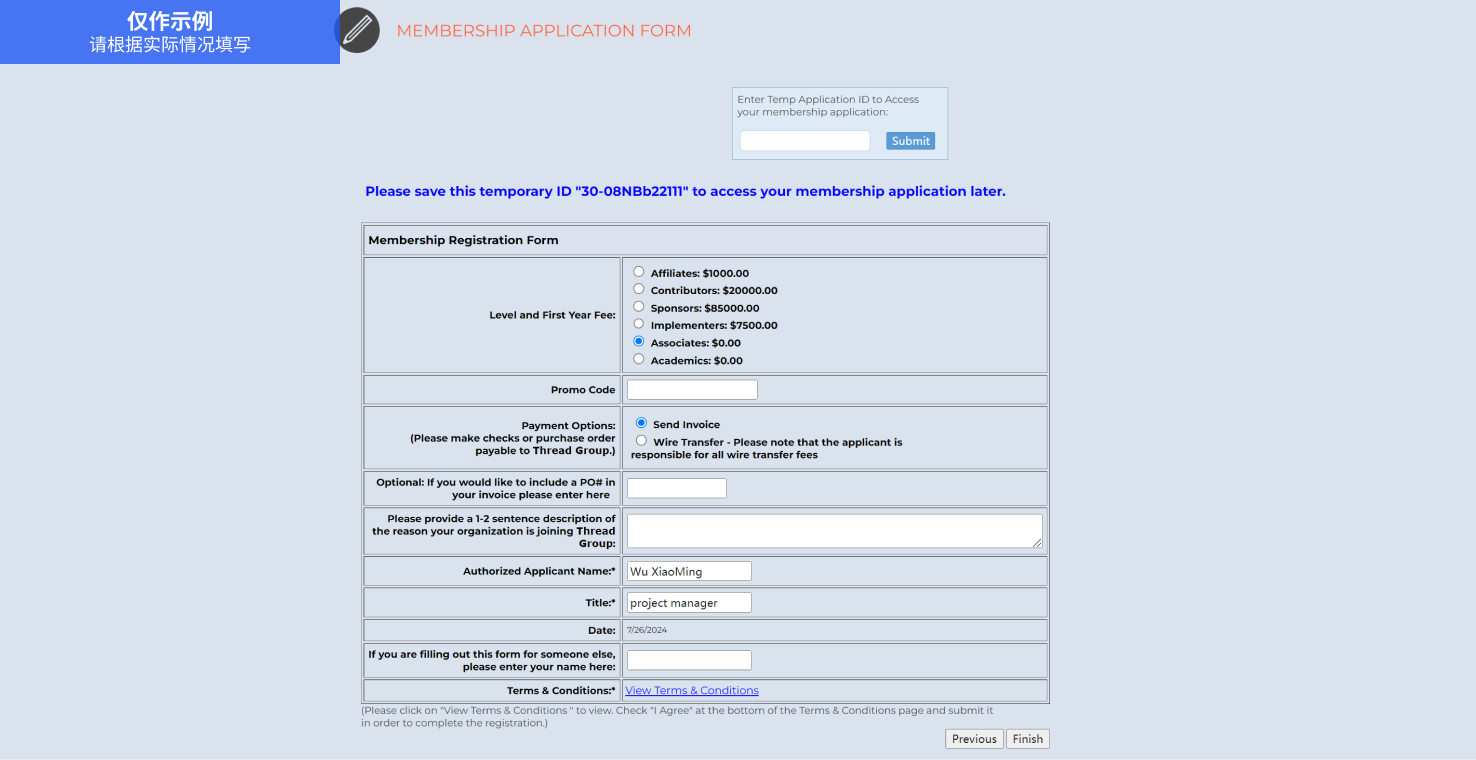根据您选择的会员方案,填写申请表,加入Thread Group。填写申请表时请保存好临时申请ID,以便后续访问您的会员申请。 申请表链接